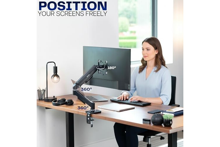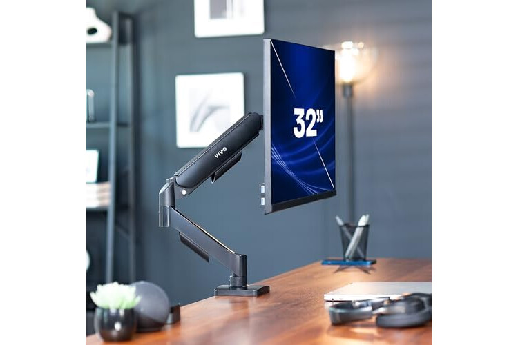 VIVO Single Monitor Stand, Fully Adjustable Arm for 17 to 32 inch Screen, Mechanical Articulating Desk Mount, Gaming and Office Setups, VESA 75x75, 100x100, Max 19.8 lbs, Classic, Black, STAND-V001O