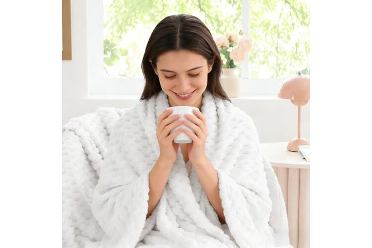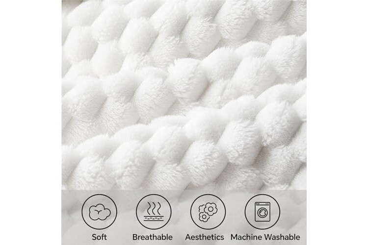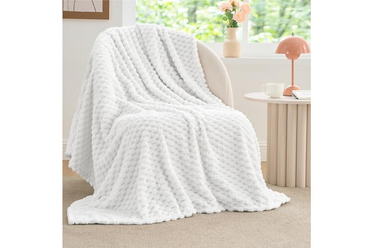 BEDELITE Fleece Throw Blanket for Couch & Bed - 3D Jacquard Decorative White Blanket, Super Soft and Cozy Warm Fuzzy Blanket All Seasons Suitable, 50x60Inches
