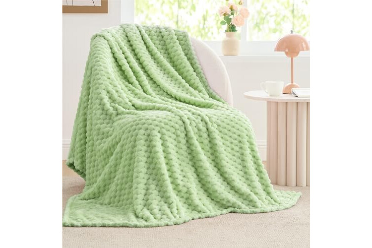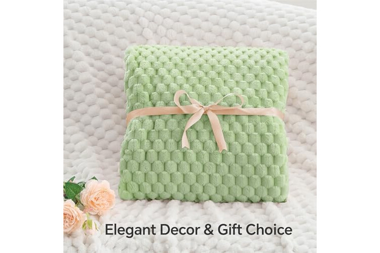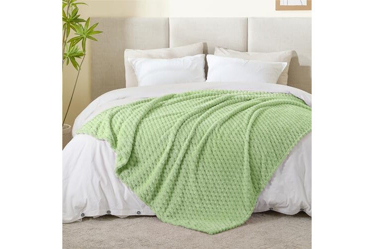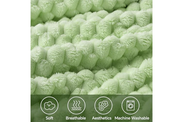 BEDELITE Fleece Throw Blanket for Couch & Bed - 3D Jacquard Decorative Light Green Blanket, Super Soft and Cozy Warm Fuzzy Blanket All Seasons Suitable, 50x60Inches