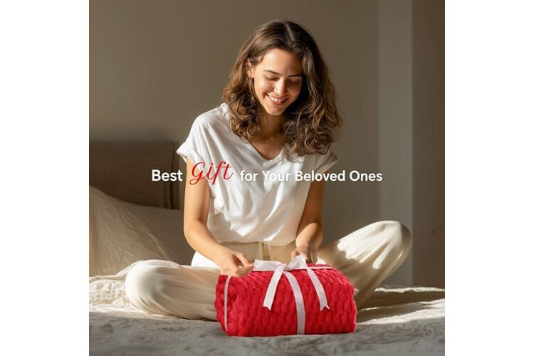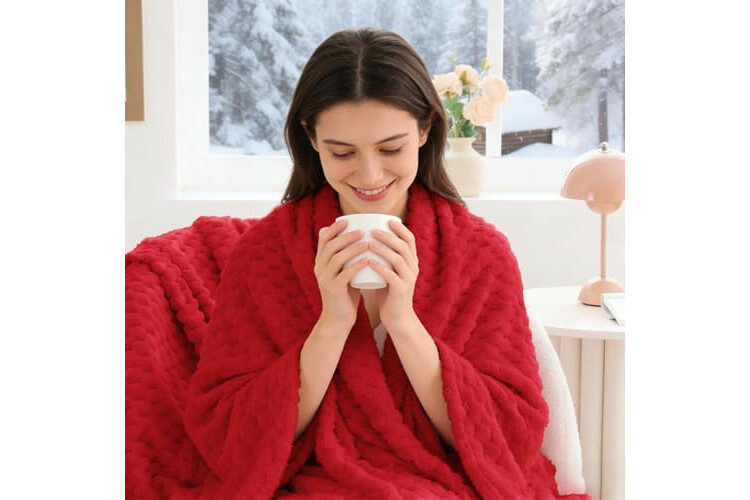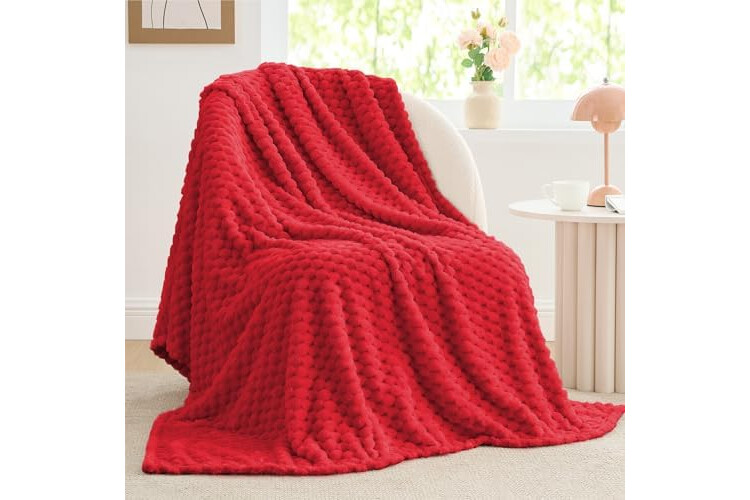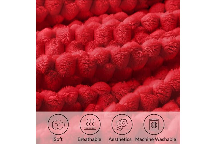 BEDELITE Fleece Throw Blanket for Couch & Bed - 3D Jacquard Decorative Red Blanket, Super Soft and Cozy Warm Fuzzy Blanket All Seasons Suitable, 50x60Inches