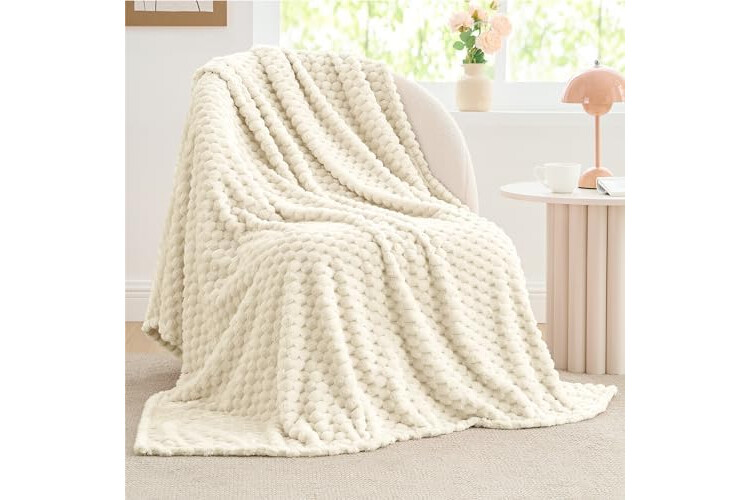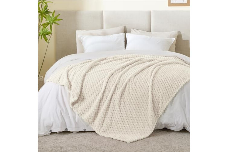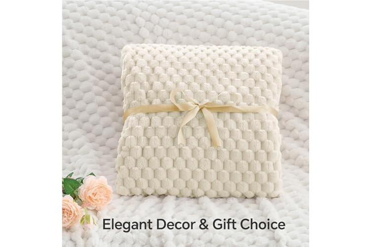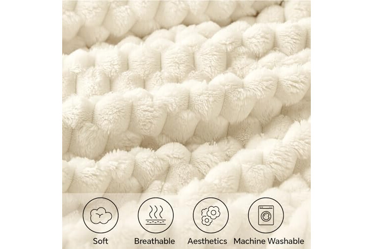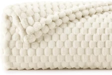 BEDELITE Fleece Blanket - 3D Jacquard Decorative Cream Throw Blankets for Couch & Bed, Soft and Cozy Warm Plush Fluffy Blanket All Seasons Suitable, 50x60Inches