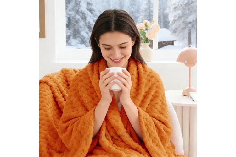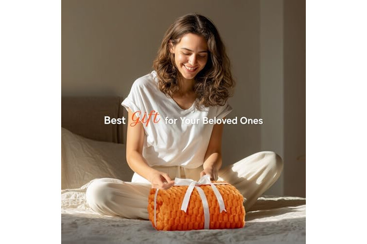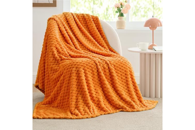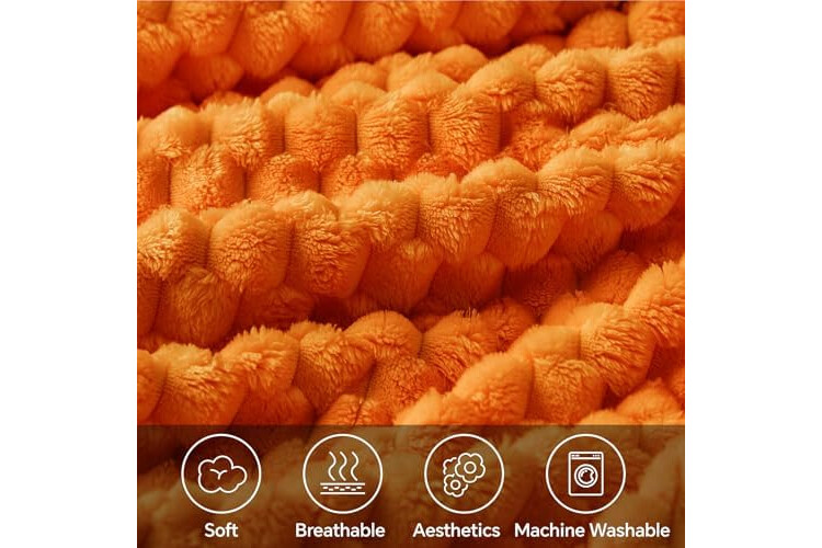 BEDELITE Fall Throw Blanket for Couch & Bed - 3D Jacquard Decorative Orange Blankets, Soft and Cozy Warm Plush Fluffy Fleece Blanket, 50x60Inches