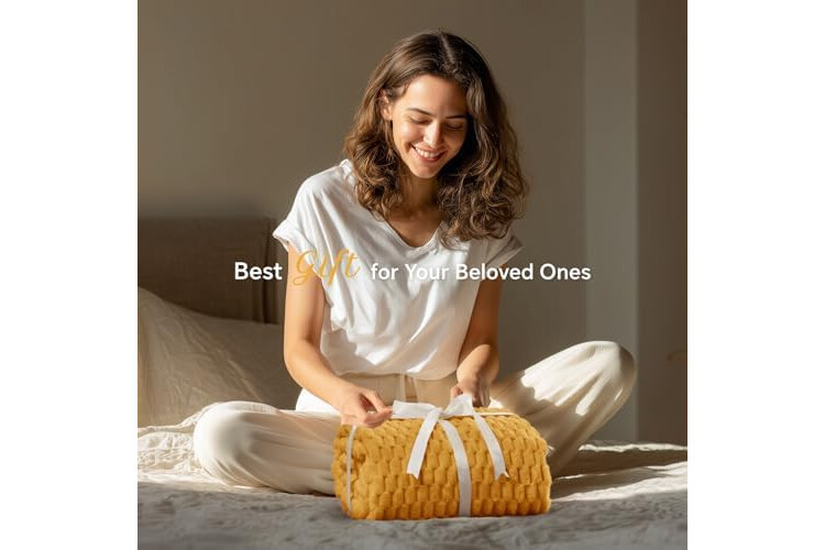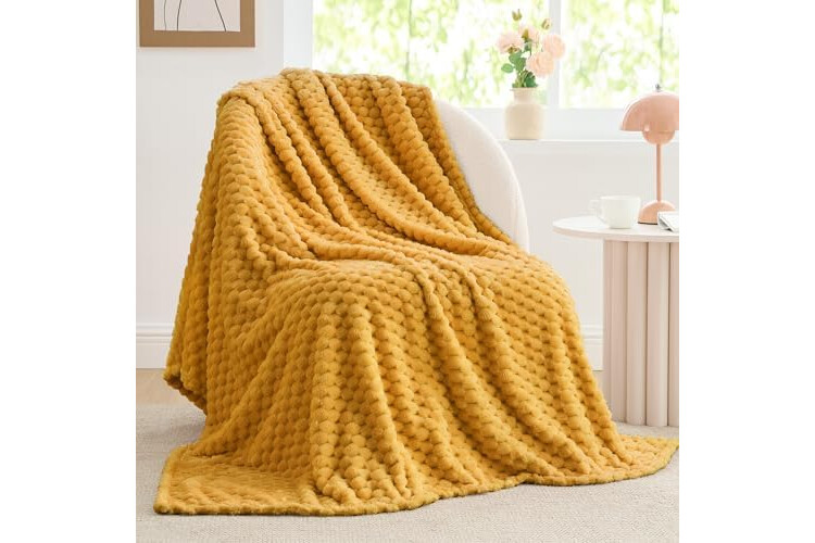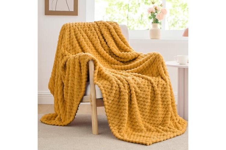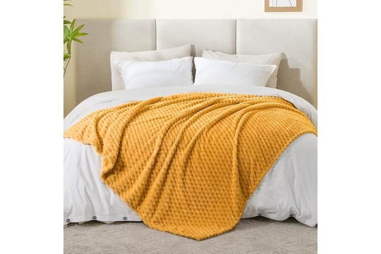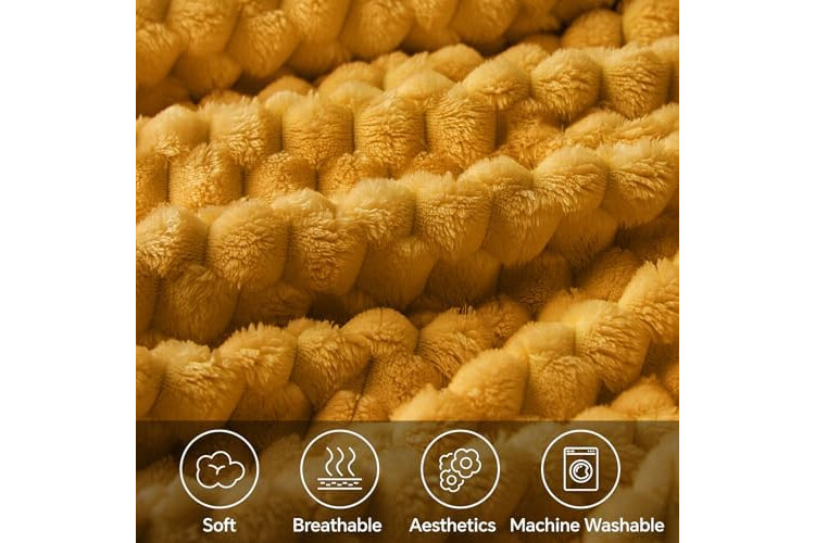 BEDELITE Fleece Blanket - 3D Jacquard Decorative Mustard Yellow Throw Blankets for Couch & Bed, Soft and Cozy Warm Plush Fluffy Blanket All Seasons Suitable, 50x60Inches