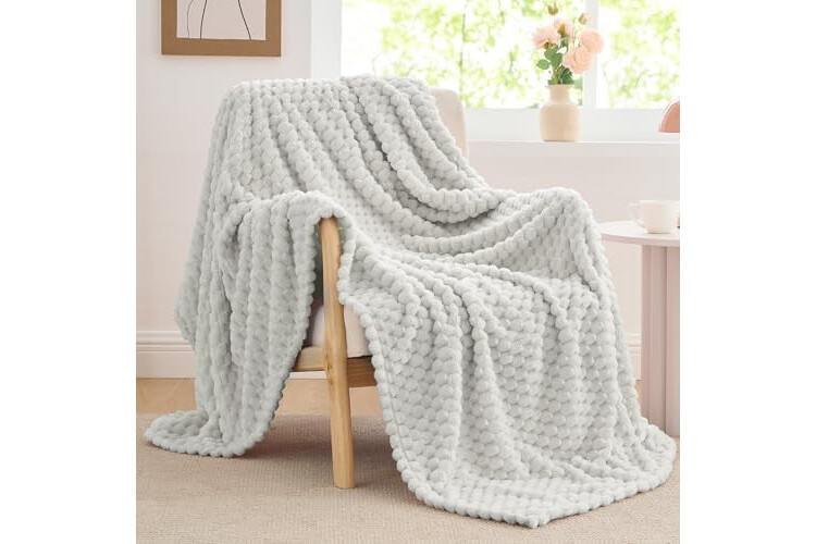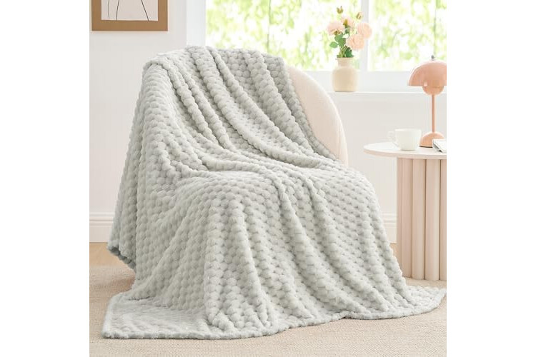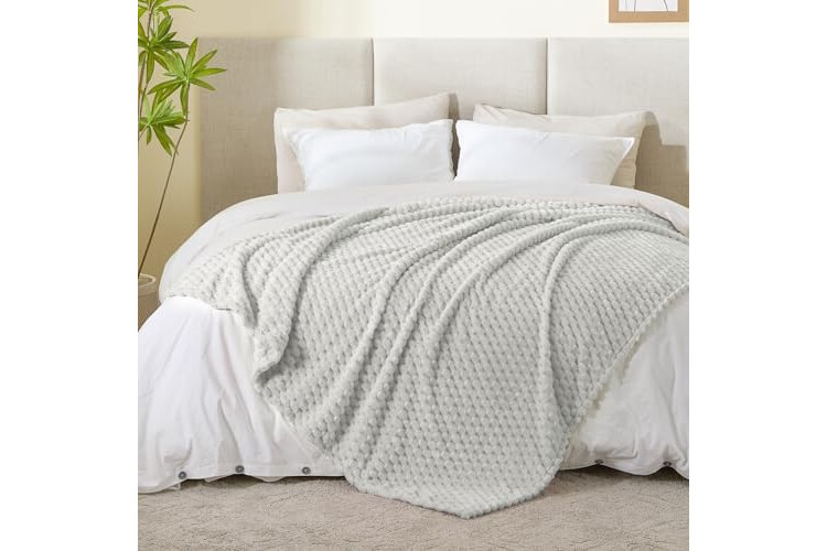 BEDELITE Fleece Blanket - 3D Jacquard Decorative Light Grey Throw Blankets for Couch & Bed, Soft and Cozy Warm Plush Fluffy Blanket All Seasons Suitable, 50x60Inches