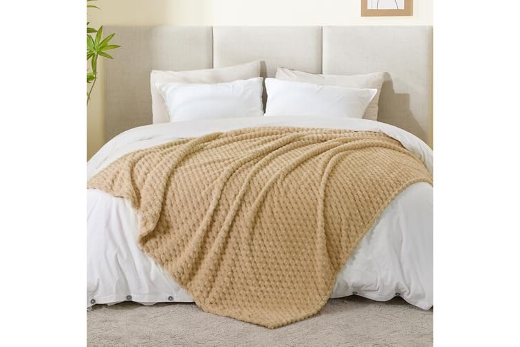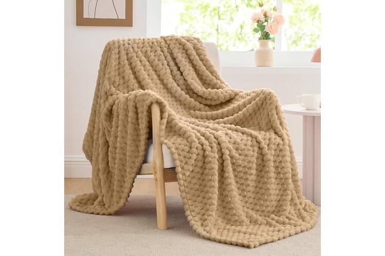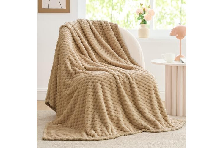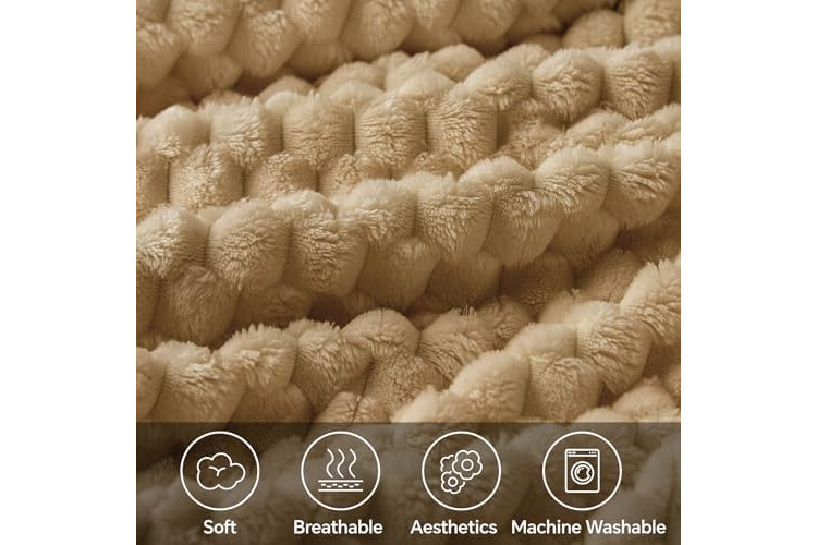 BEDELITE Fleece Blanket - 3D Jacquard Decorative Camel Throw Blankets for Couch & Bed, Soft and Cozy Warm Plush Fluffy Blanket All Seasons Suitable, 50x60Inches
