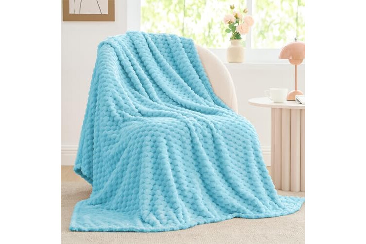 BEDELITE Fleece Blanket - 3D Jacquard Decorative Light Blue Throw Blankets for Couch & Bed, Soft and Cozy Warm Plush Fluffy Blanket All Seasons Suitable, 50x60Inches