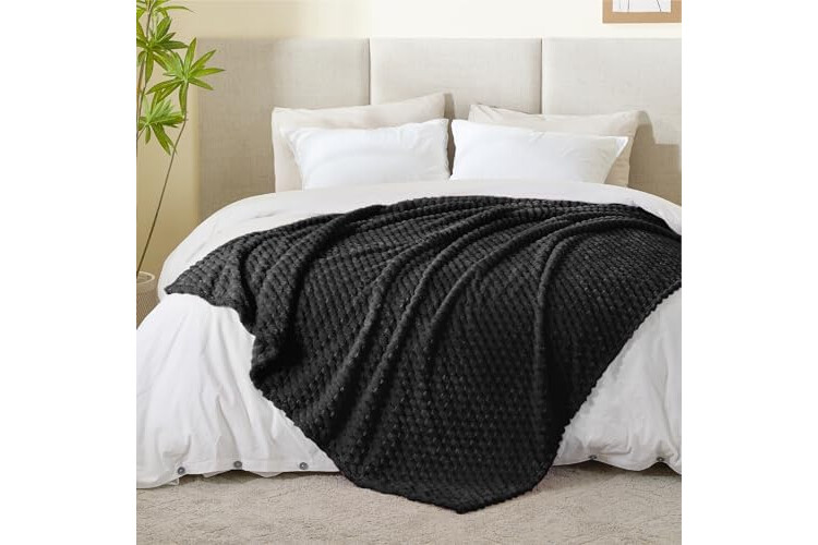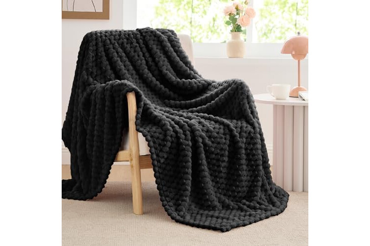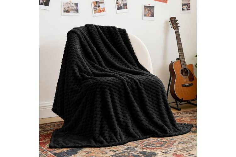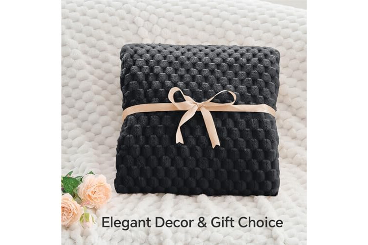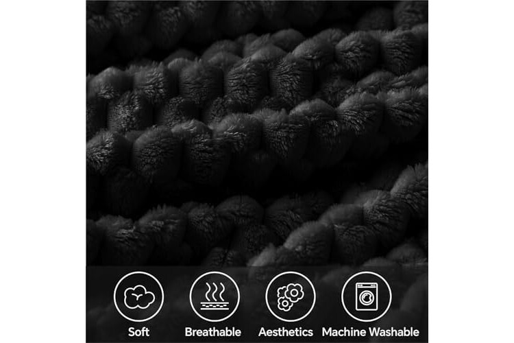 BEDELITE Fleece Blanket Throw XL for Bed Couch, 3D Jacquard Decorative Black Throw, Soft and Cozy Warm Plush Fuzzy Blanket All Seasons Suitable, 50x70Inches