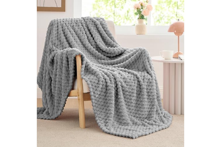 BEDELITE Fleece Blanket - 3D Jacquard Decorative Grey Throw Blankets for Couch & Bed, Soft and Cozy Warm Plush Fluffy Blanket All Seasons Suitable, 50x70Inches
