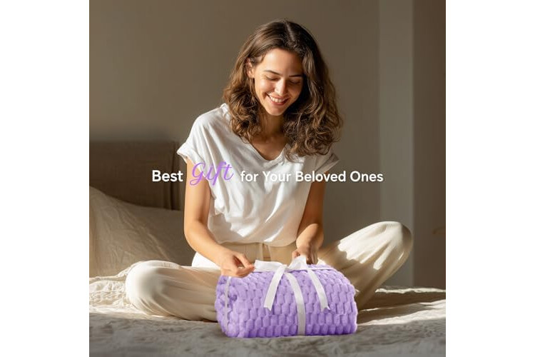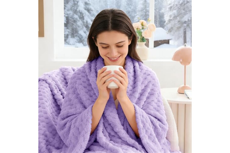 BEDELITE Fleece Blanket - 3D Jacquard Decorative Lavender Throw Blankets for Couch & Bed, Soft and Cozy Warm Plush Fluffy Blanket All Seasons Suitable, 50x70Inches