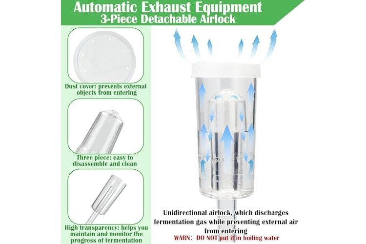 Easy to Use: Simply fill the one-way airlock halfway with water and the fermentation gas will be released smoothly, preventing overpressurization in the tank. It also blocks out outside air, ensuring a pure fermentation environment and increasing success rates