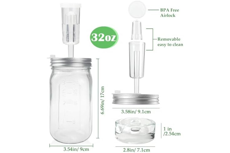 Premium Quality Materials: The 32oz fermentation jars are made of thick glass, evenly weighted fermentation weights, wide mouth fermenting lids are made of stainless steel, and the airlocks are made of food grade PC material. These good quality materials ensure a safe and efficient fermentation process