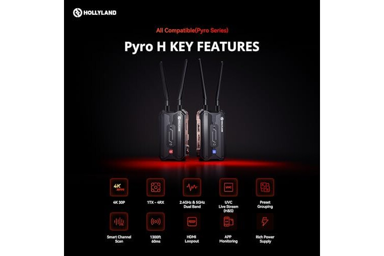 | Built-In Media | Hollyland Cylindrical Antenna (2.4GHz & 5GHz)*5, Hollyland Pyro H Wireless Video Receiver*1, Hollyland Pyro H Wireless Video Tra |