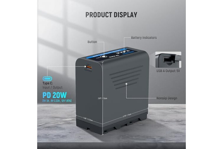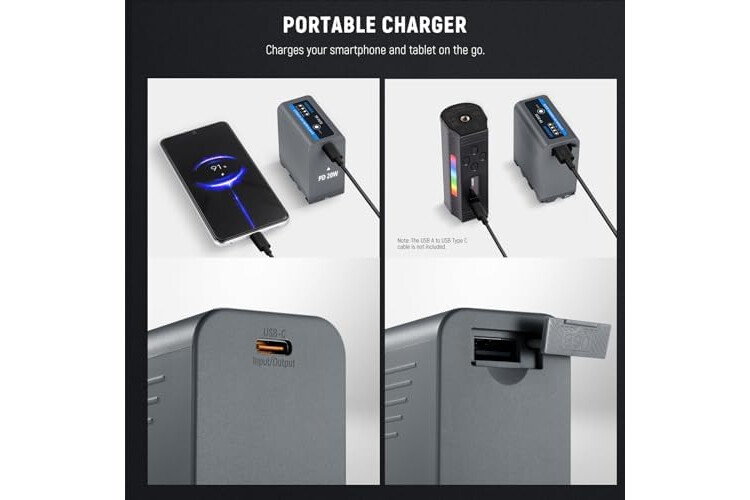 【4.8H Full Charge Time with PD 20W Fast Charging】 This rechargeable np-f970 battery features a bidirectional USB Type C input/output port that supports 20W PD fast charging, fully charging the battery only takes 4.8 hours via a wall charger! A USB Type C fast charging cable is included. PD 20W wall charger is NOT included