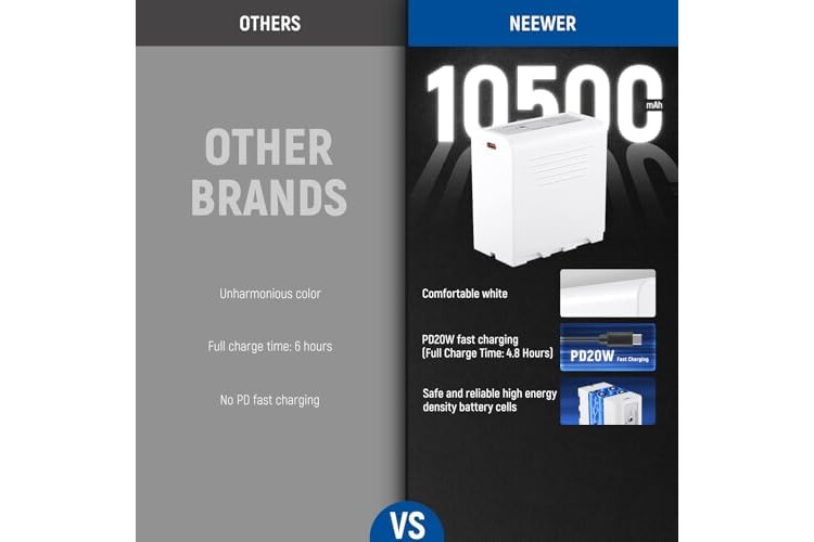 NEEWER 10500mAh NP-F970 Replacement Battery, 20W PD Fast Charge USB C Rechargeable Compatible with Sony NP-F550 F750 F950 F970 FX3 FX30 A7 Canon R5 Nikon Z8 Camera Camcorder Video Light Monitor, White