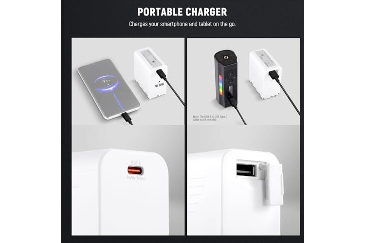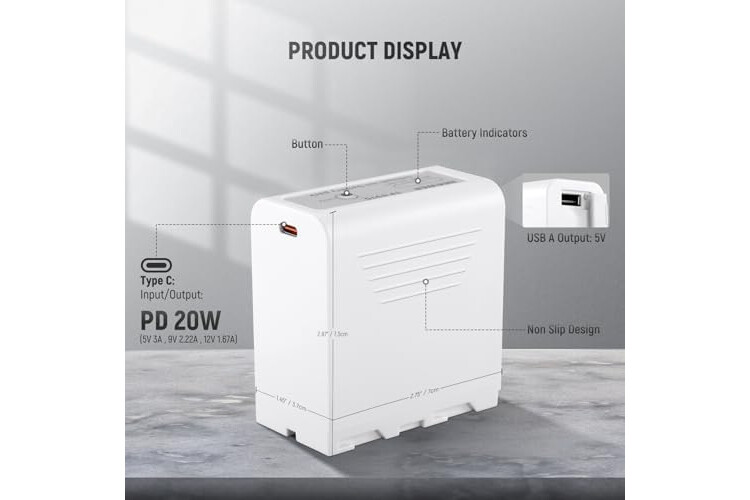 【4.8H Full Charge Time with PD 20W Fast Charging】 This rechargeable NP-F970 battery features a bidirectional USB Type C input/output port that supports 20W PD fast charging, fully charging the battery only takes 4.8 hours via a wall charger! A USB Type C fast charging cable is included. PD 20W wall charger is NOT included