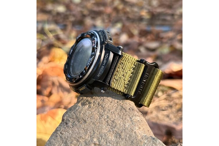 Military Style Watch Strap for Casio Protrek PRG-200/250/500/260/280/550,PRW-2500/3500/5100/5000/510, Nylon Hook & Loop Casio Band