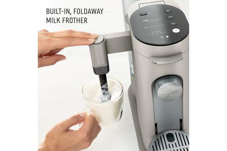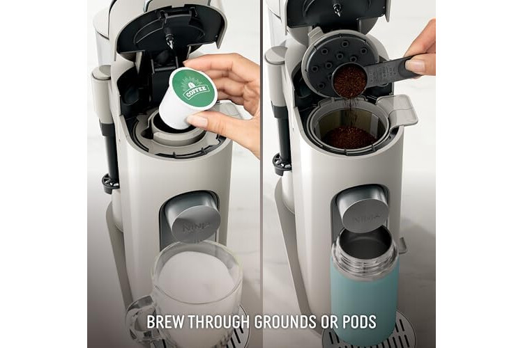 Ninja Pod & Grounds Specialty Single-Serve Coffee Maker, K-Cup Pod Compatible, Brews Grounds, Compact Design, Built-In Milk Frother, 56-oz. Reservoir, 6-oz. Cup to 24-oz. Mug Sizes, Stone, PB051ST