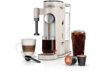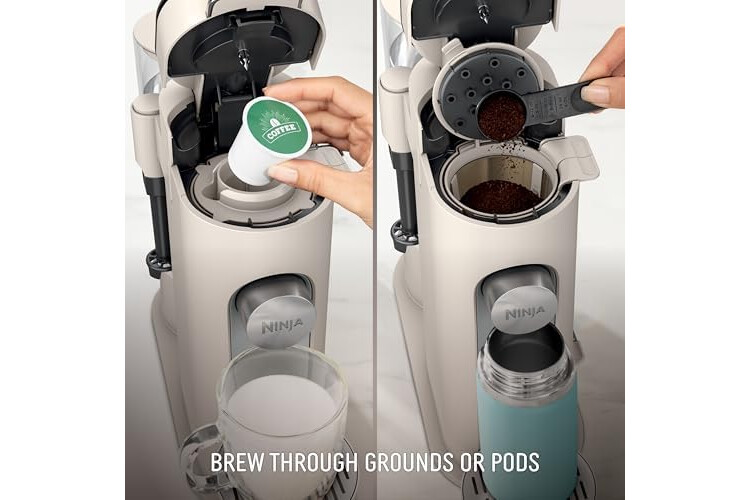 Ninja Pod & Grounds | Coffee Maker | XL Single-Serve | K-Cup Pod Compatible | Brews Grounds | Compact Design | Built-In Milk Frother | 68-oz. Reservoir, 6-oz. Cup to 24-oz. Mug Sizes | Stone |PB055AST