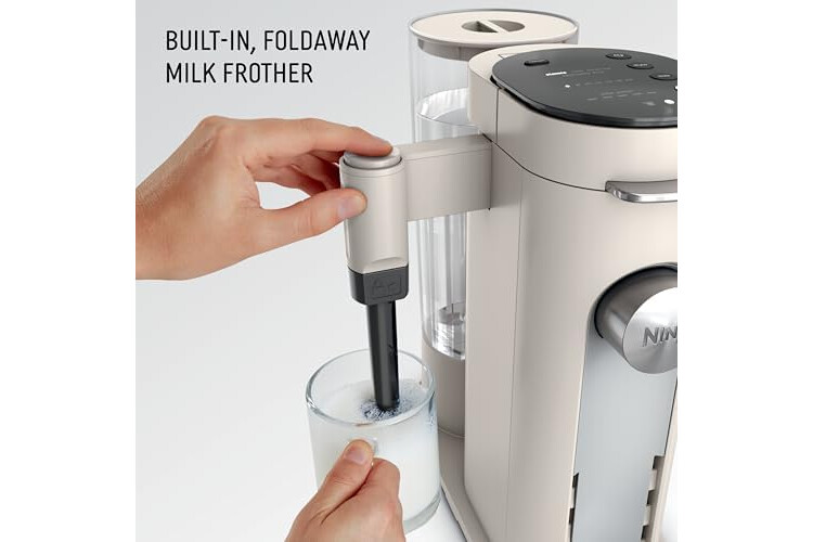BUILT-IN, FOLD-AWAY FROTHER: Turns hot or cold milk (or milk alternatives) into silky-smooth froth. Removable for easy cleaning.