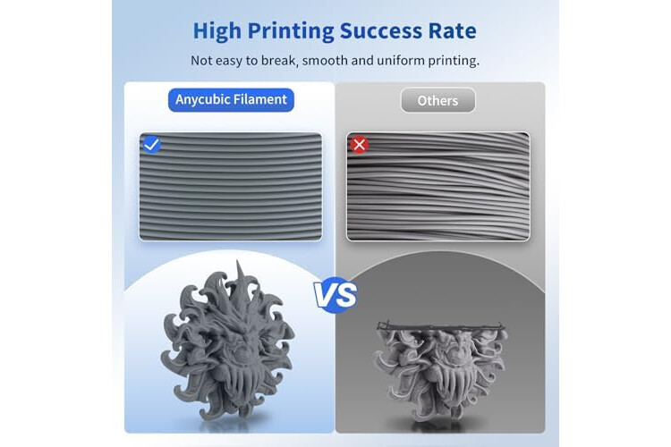 ใ๐๐๐๐ฎ๐ซ๐๐๐ฒ & ๐๐จ๐ง๐ฌ๐ข๐ฌ๐ญ๐๐ง๐๐ฒใ Anycubic 3D Printer PLA filament of 1.75mm diameter, Minimum dimensional tolerance ยฑ0.02mm, which makes filament outflow smoother, came out homogeneous. The low shrinkage and stable printing dimensions make the fusion between the layers very good to obtain an even better-bridging result. You don't worry the diameter changes a lot then the feed rate is disrupted with thicker and thinner layers at all