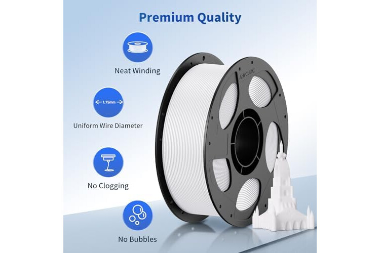 【Neat Spool & Premium Quality】 The 3D Printing PLA filament was neat on the roll and easily left the spool without crossing turns. Resulting in less thread pulling and twisting, no clogging, and super under-extruding. It produces the cleanest, least stringing prints of any of the filaments you have used while resisting warp...