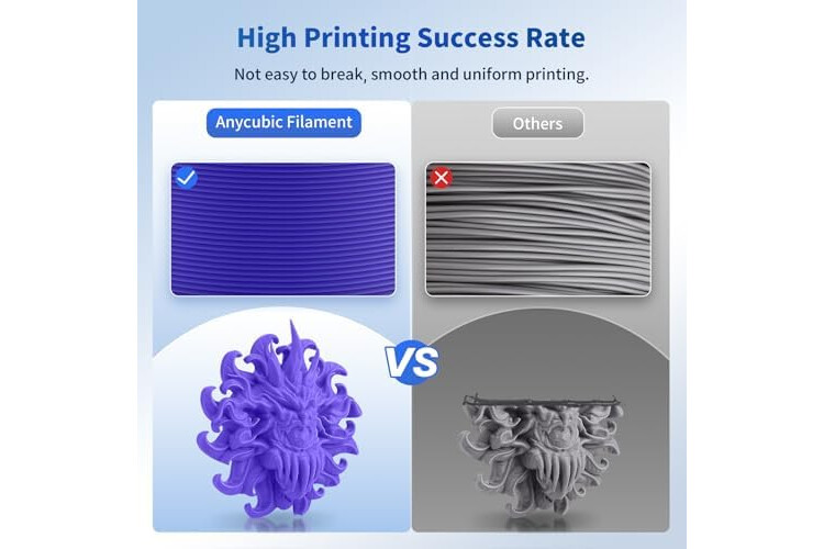 【Accuracy & Consistency】 Anycubic 3D Printer PLA filament of 1.75mm diameter, minimum dimensional tolerance +/- 0.02mm, which makes filament outflow smoother, came out homogeneous. The low shrinkage and stable printing dimensions make the fusion between the layers very good to obtain an even better-bridging result. You don't worry the diameter changes a lot then the feed rate is disrupted with thicker and thinner layers at all.