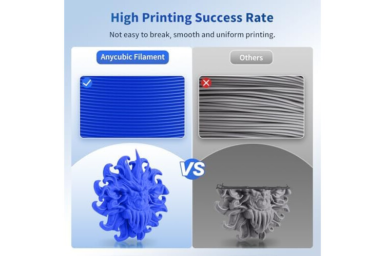 【Accuracy & Consistency】 Anycubic 3D Printer PLA filament of 1.75mm diameter, minimum dimensional tolerance +/- 0.02mm, which makes filament outflow smoother, came out homogeneous. The low shrinkage and stable printing dimensions make the fusion between the layers very good to obtain an even better-bridging result. You don't worry the diameter changes a lot then the feed rate is disrupted with thicker and thinner layers at all.