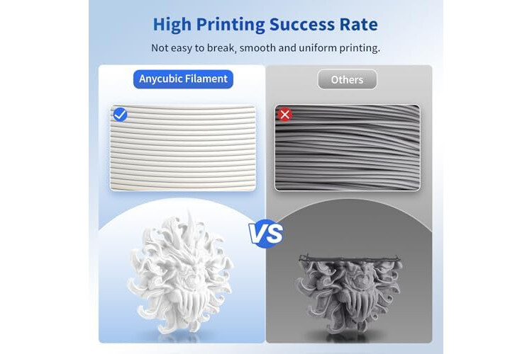 【Accuracy & Consistency】 Anycubic 3D Printer PLA filament of 1.75mm diameter, minimum dimensional tolerance +/- 0.02mm, which makes filament outflow smoother, came out homogeneous. The low shrinkage and stable printing dimensions make the fusion between the layers very good to obtain an even better-bridging result. You don't worry the diameter changes a lot then the feed rate is disrupted with thicker and thinner layers at all.