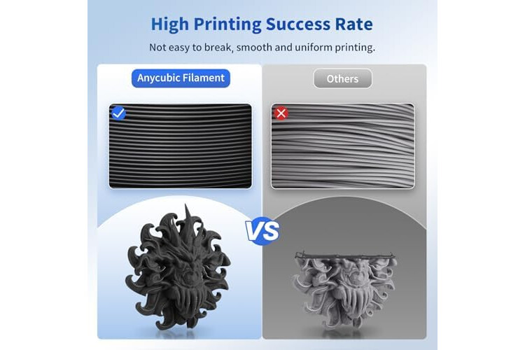 • 【Accuracy & Consistency】 Anycubic 3D Printer PLA filament of 1.75mm diameter, Minimum dimensional tolerance +/- 0.02mm, which makes filament outflow smoother, came out homogeneous. The low shrinkage and stable printing dimensions make the fusion between the layers very good to obtain an even better-bridging result. You don't worry the diameter changes a lot then the feed rate is disrupted with thicker and thinner layers at all.