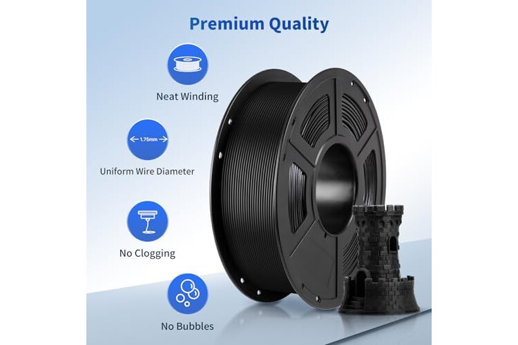 • 【Neat Spool & Premium Quality】 The 3D Printing PLA filament was neat on the roll and easily left the spool without crossing turns. Resulting in less thread pulling and twisting, no clogging, and super under-extruding. It produces the cleanest, least stringing prints of any of the filaments you have used while resisting warp...