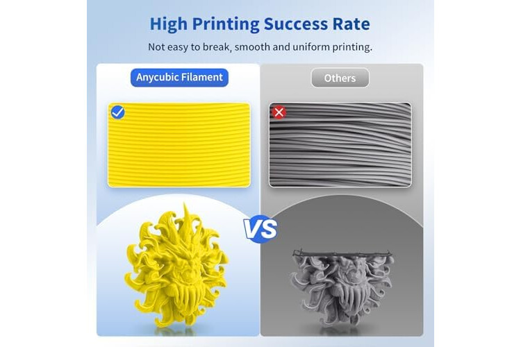 【Accuracy & Consistency】 Anycubic 3D Printer PLA filament of 1.75mm diameter, Minimum dimensional tolerance +/- 0.02mm, which makes filament outflow smoother, came out homogeneous. The low shrinkage and stable printing dimensions make the fusion between the layers very good to obtain an even better-bridging result. You don't worry the diameter changes a lot then the feed rate is disrupted with thicker and thinner layers at all.