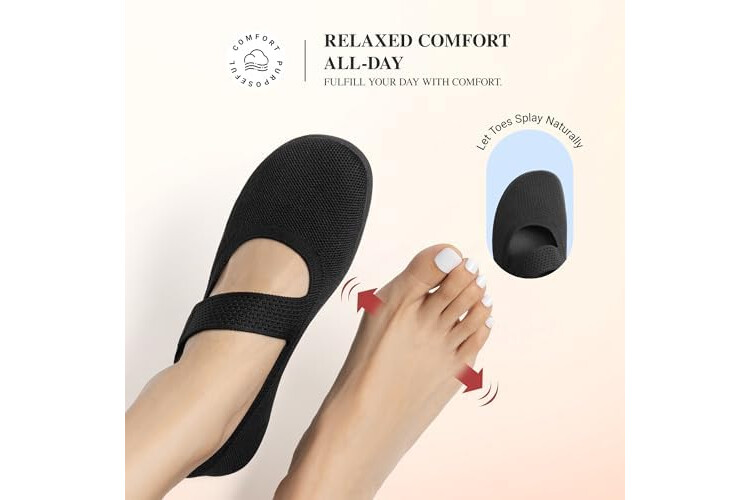 DREAM PAIRS Women's Mary Jane Ballet Flats Barefoot Knit Wide Toe Box Arch Support Flat Shoes for Women Dressy Casual Office Business Work Travel Walk