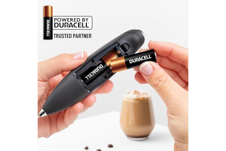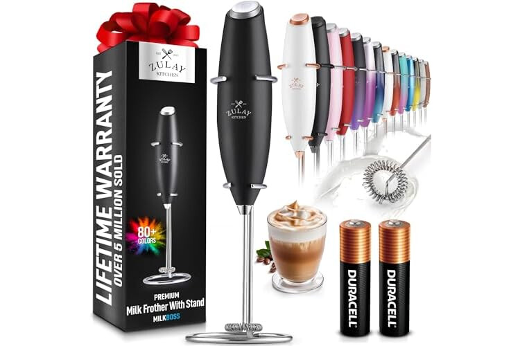 Zulay Kitchen Powerful Milk Frother Wand With 2 Duracell Batteries - Ultra Fast Handheld Drink Mixer - Electric Whisk Foam Maker for Coffee, Lattes, Cappuccino, Matcha, Hot Chocolate & Creamer - Black