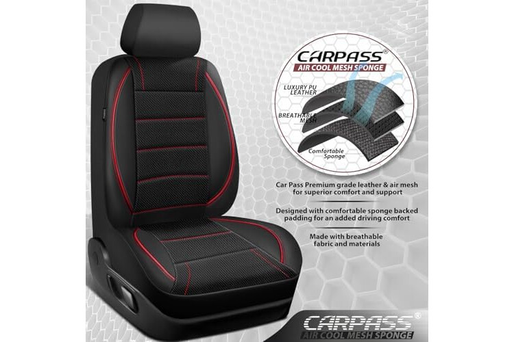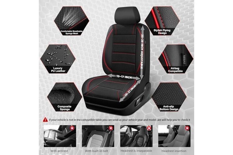 | Included Components | Black Red Mesh Leather Car Seat Cover Front Seats |