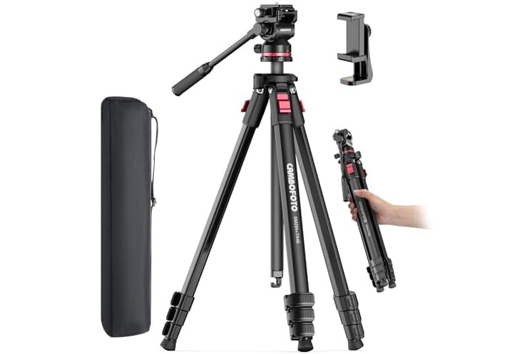 CAMBOFOTO 68" Fluid-Head-Camera-Tripod, Professional Travel Video Tripod for Camera DSLR, Camcorders, Binoculars, Spotting Scope, Telescope, Max Load 8.8lbs, Black