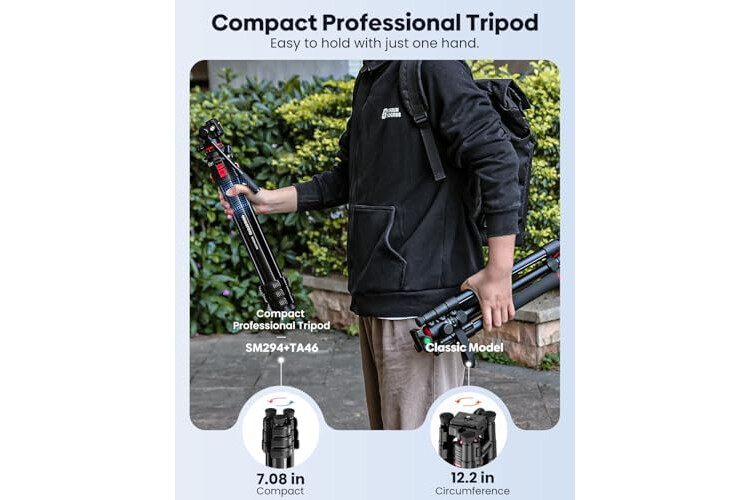 【Compact and Portable, Your Travel Companion】 The CAMBOFOTO camera tripod is built with sturdy aluminum legs for professional support. The center column and legs fit tightly together, with a folded circumference of just 7.08 inches, allowing for one-handed carrying. Weighing only 2.89 lbs, it’s lightweight yet durable, perfect for travel.