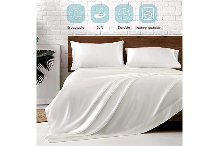 MR&HM Satin Bed Sheets, Full Size Sheets Set, 4 Pcs Silky Bedding Set with 15 Inches Deep Pocket for Mattress (Full, Ivory)