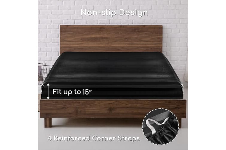 Full Size Bed Sheets Set 4 Pcs: Our package includes 1 Flat Sheet: 81"x 96", 1 Fitted Sheet: 54"x 75" + 15" Deep Pocket, 2 Pillowcases: 20"x 30". Reinforced elastic corner straps securely wrap around your mattress, effortlessly solving the slipping issues of satin and letting you enjoy a smooth, comfortable night.