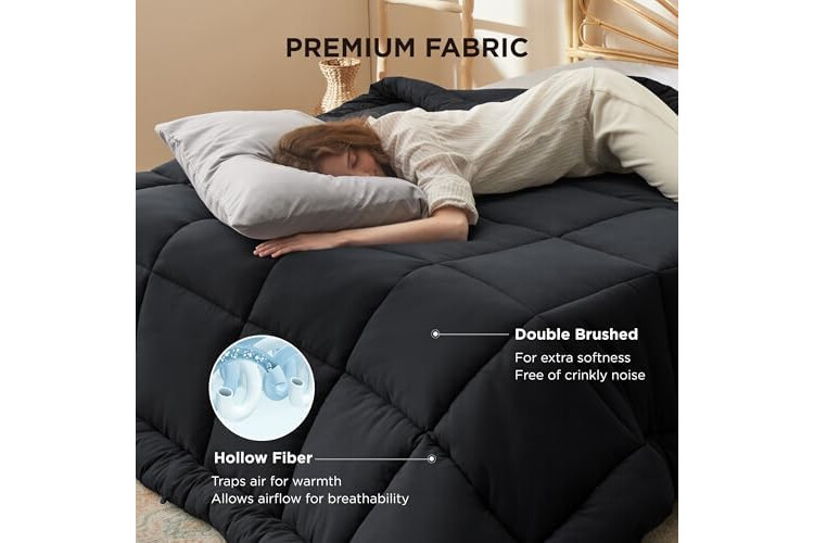 Bedsure Comforter Duvet Insert - Quilted Comforters Full Size, All Season Duvet, GentleSoft Down Alternative Bedding, with 8 Tabs, Gifts for Women/Men, Black, Full 86 x 82 Inches
