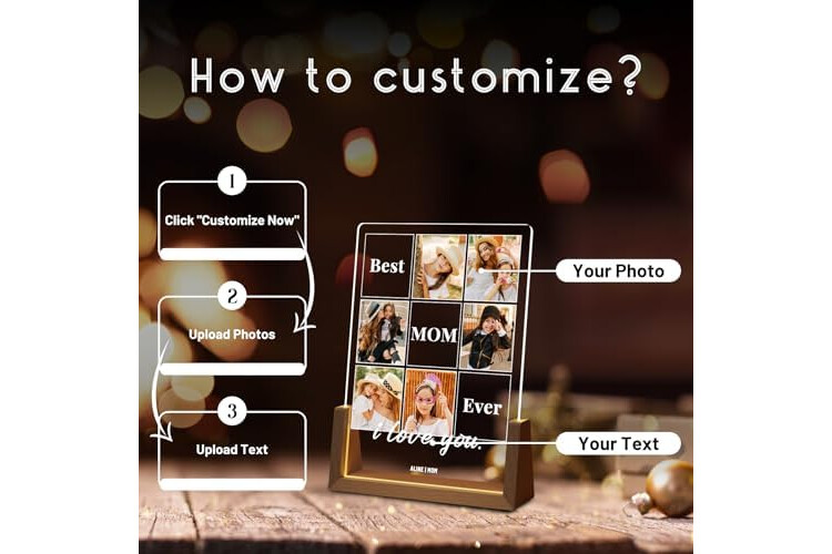 LUCKOR 2026 Personalized Mothers Day Picture Frame for Mom, Custom Gifts for Mother's Day from Daughter Son Kids, Customized Photo Presents for Wife from Husband, Best Mom Ever Gift Ideas