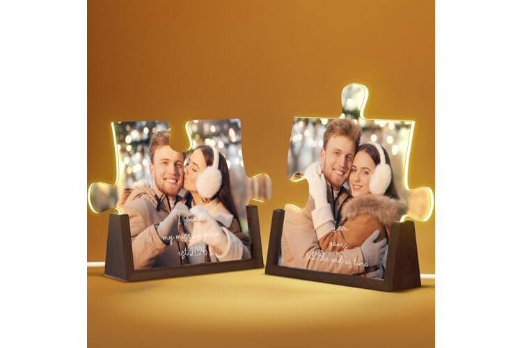 【Unique Interlocking Puzzle Design for Couples】Inspired by the idea that two hearts fit together perfectly, this LED photo frame features a charming puzzle-piece shape that symbolizes connection, love, and belonging. Choose one piece as a meaningful standalone gift, or select both designs to create a complete heart — a beautiful representation of two people becoming one. Perfect for Valentine's Day, anniversaries, or any moment worth celebrating together.