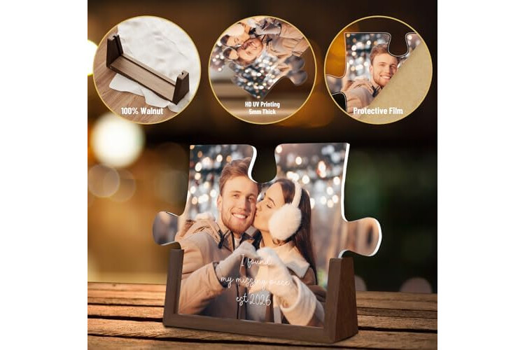 LUCKOR Valentines Day Personalized Puzzle Photo Plaque Gifts for Her Him Girlfriend Boyfriend, Custom Picture Frame for Women Men, Customized Gifts for Couple Wife Husband on Anniversary Birthday