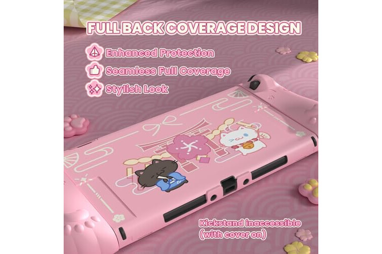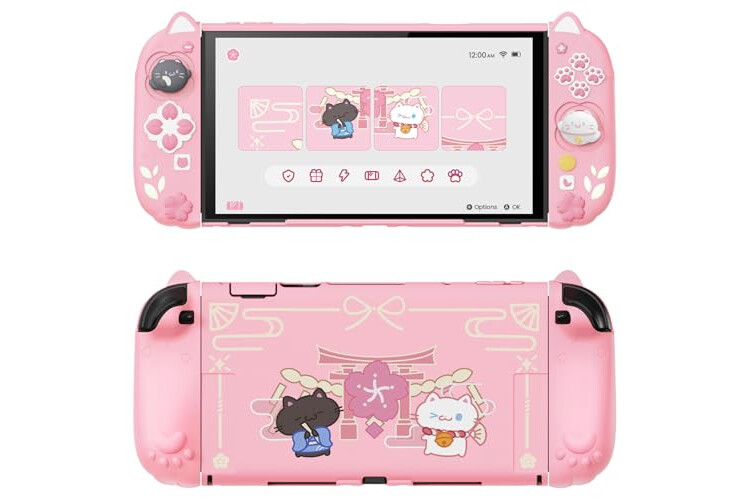 【Kawaii Festival Cat Design – Cute & Eye-Catching】Features twin kimono cats, sakura petals, and shrine accents for a festive look. This cute switch 2 protective case adds personality while protecting your console from light bumps and scratches