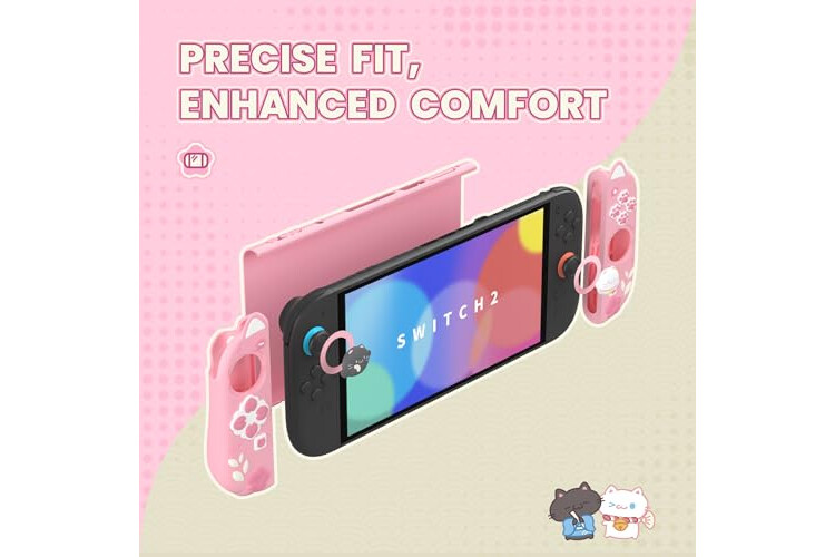 【Soft Silicone Joycon Grips – Anti-Slip & Comfortable】The Joycon covers are made of soft silicone with 3D cat ears and paw prints. Textured grip improves comfort and control during long handheld sessions—ideal for kids, girls, and anime-style gamers