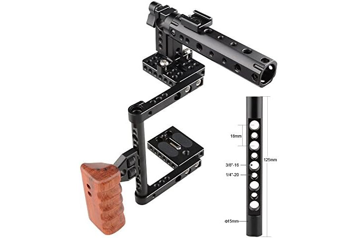 Have standard 1/4"-20 & 3/8"-16 screw hole on the cage for DIY accessories