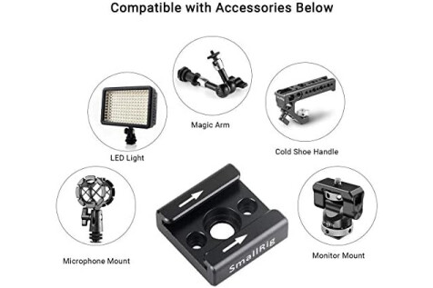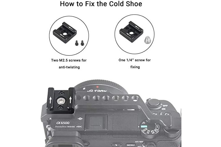 Secure tightly via the two M2.5 screws, and a 1/4" thread hole for you to attache to camera cage, plate, handles, or other accessories.