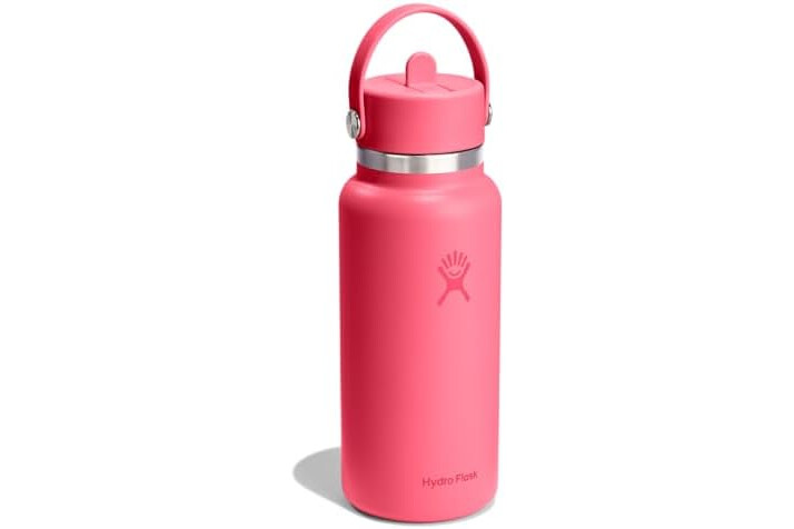 32 OZ POPSTAR PINK BOTTLE: Flip it and sip it with the Hydro Flask Wide Mouth insulated water bottle with closeable straw cap. With a comfortable, flexible handle, the leakproof straw cap is easy to open and close. Double-wall insulation keeps drinks cold up to 24 hours.