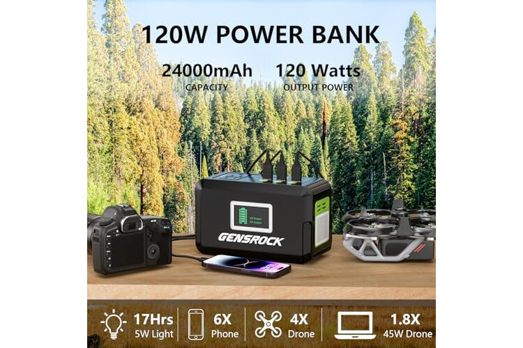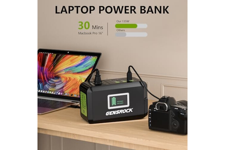 GENSROCK Portable Power Bank, 24,000mAh Portable Laptop Charger with 150W Peak AC Outlet, 8-Port Compatible with iPhone Series, MacBook, Dell, Samsung for Outdoor Camping Home Office Emergency.