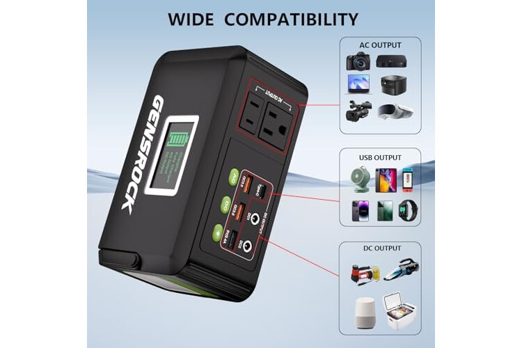 Safety Protection System:Gensrock portable power station has a built-in lithium-ion battery and a safe design-protected battery management system (BMS) to prevent battery pack overcharge, over-discharge, sh...