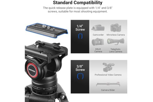 【Quick & Easy Modes Switching】 The fluid head has two QR modes, compatible with DJI RS2 RS3 RS3 PRO gimbal and compatible with Manfrotto 501PL 504PL quick release plates respectively. The quick release plate allows you to lock it in 1s and switch between tripod and gimbal shooting